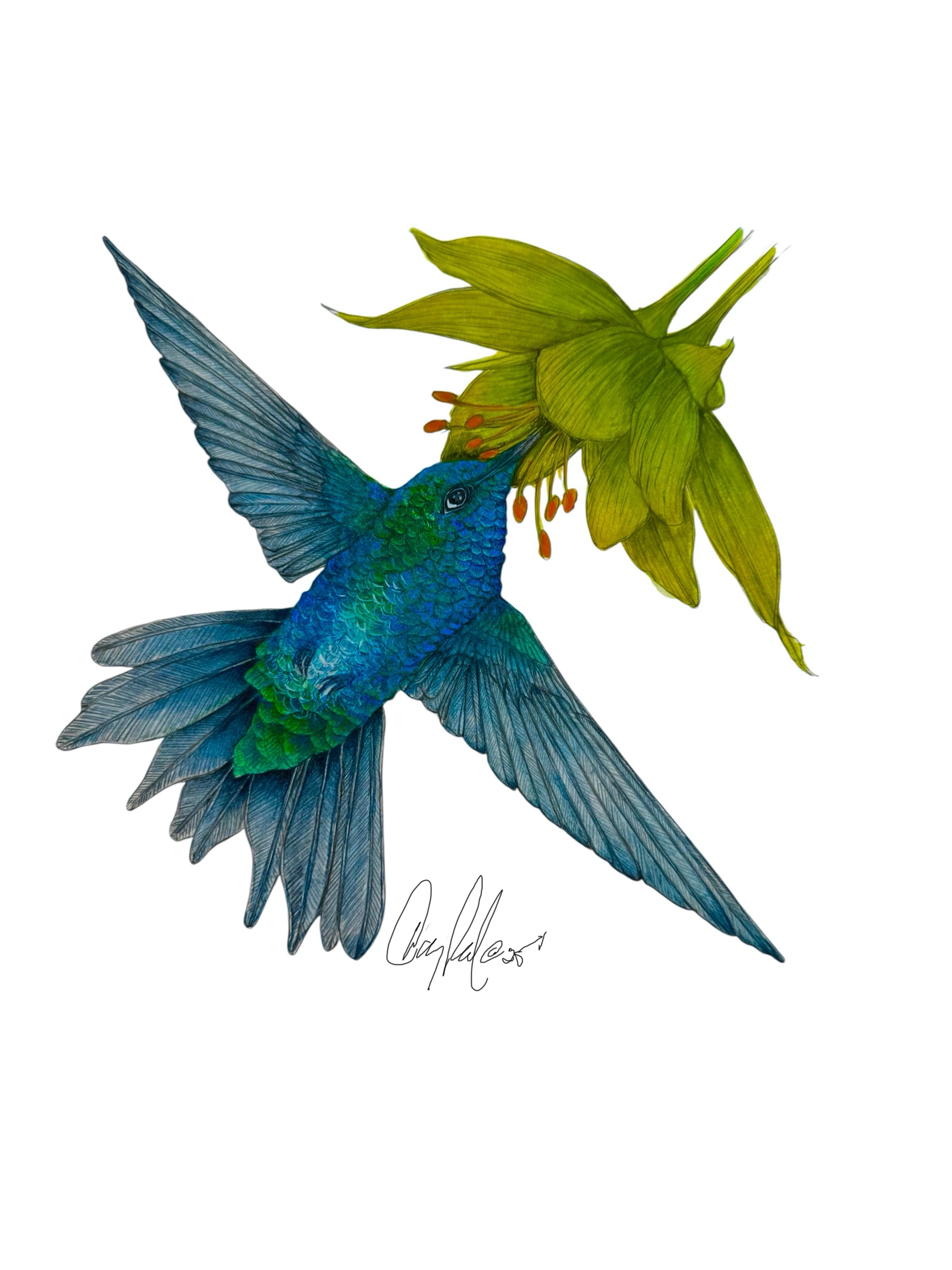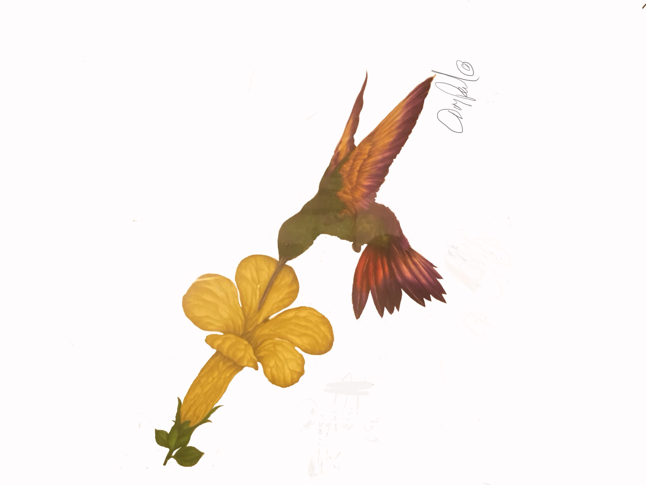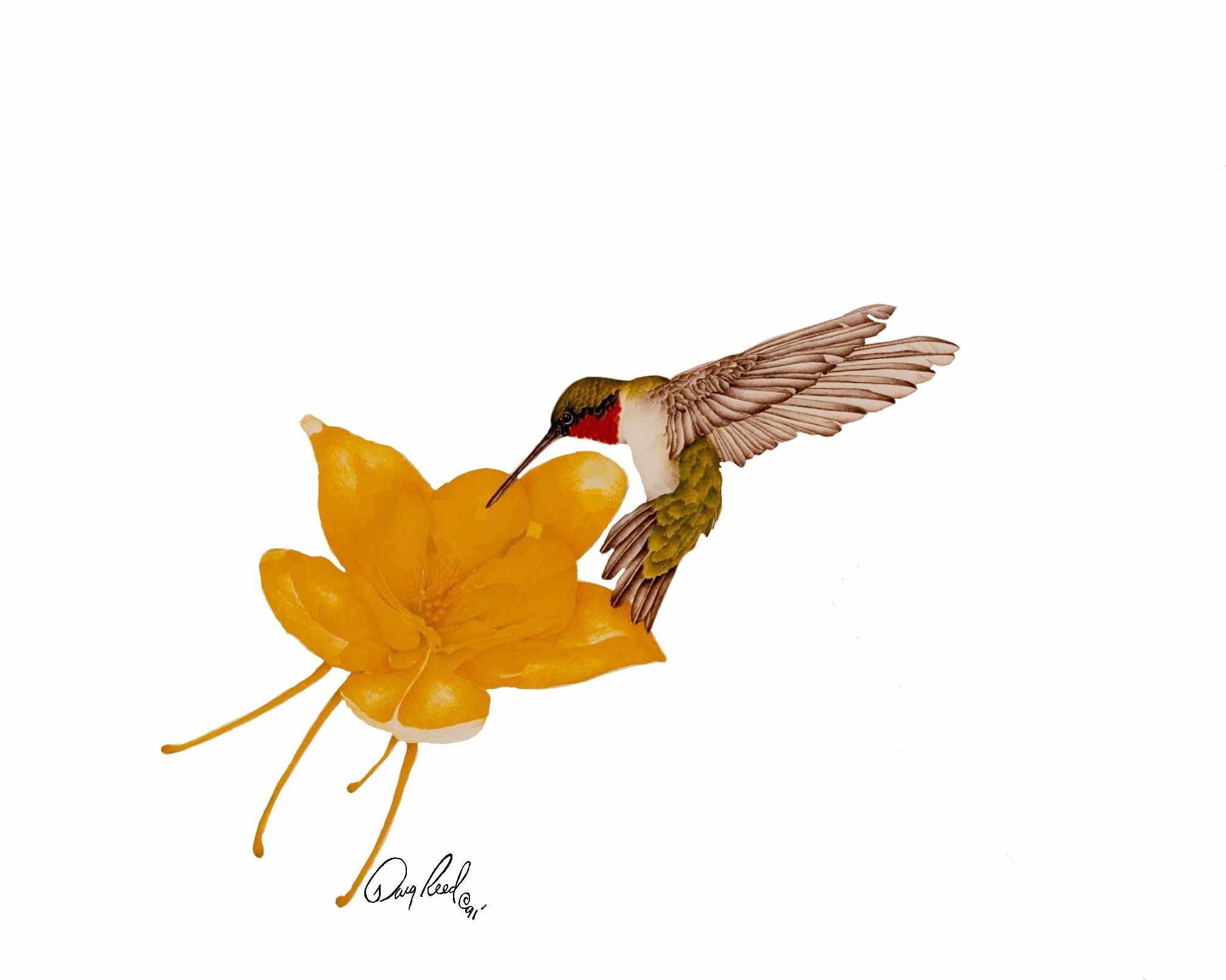 Ruby Throated Humingbird on Yellow Columbibe