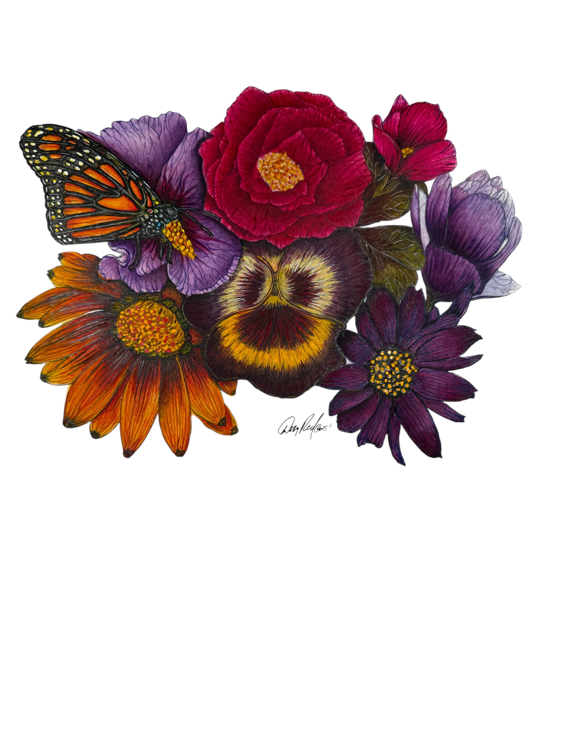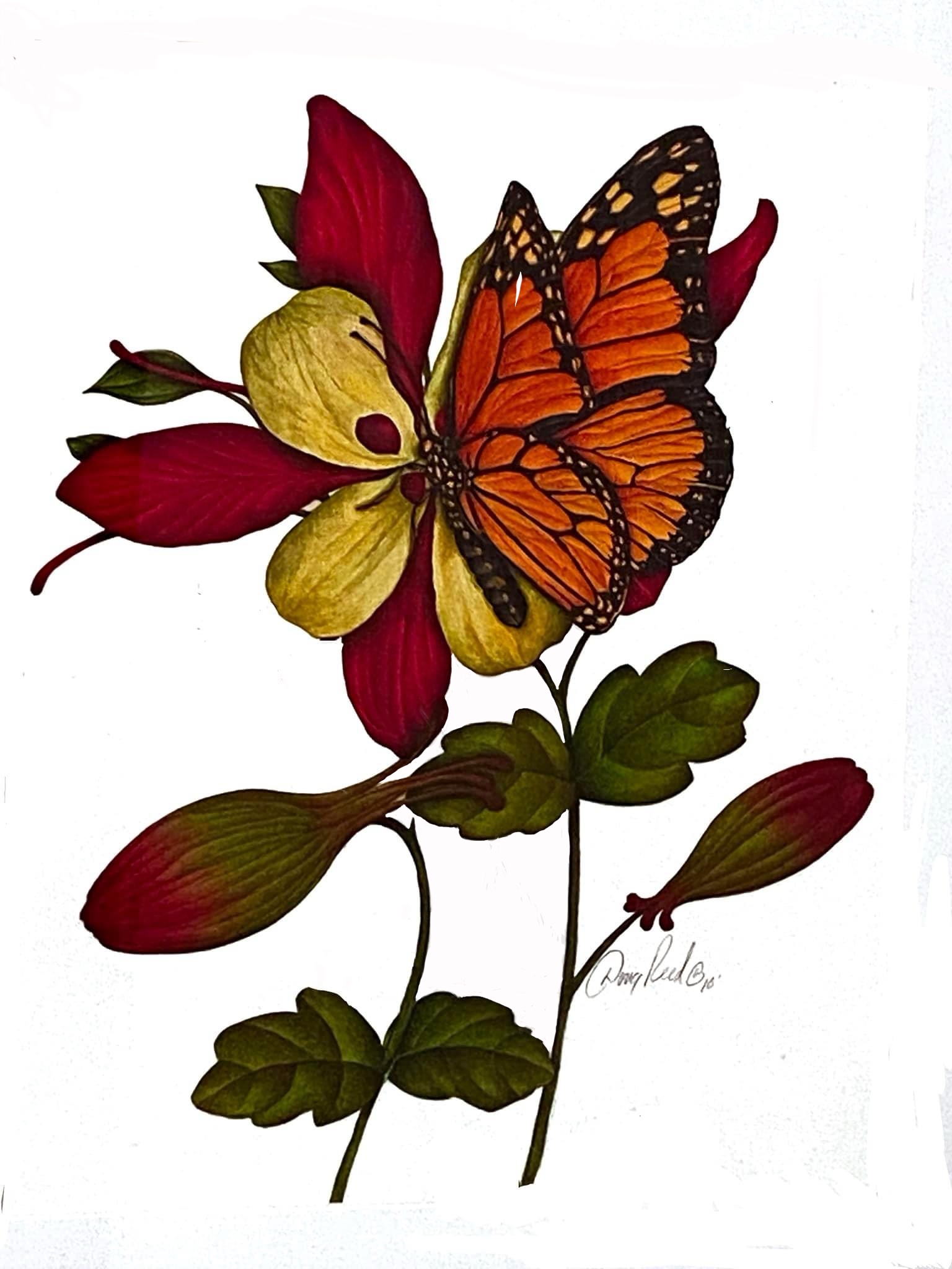 Monarch Butterfly Crimson Yellow Columbine