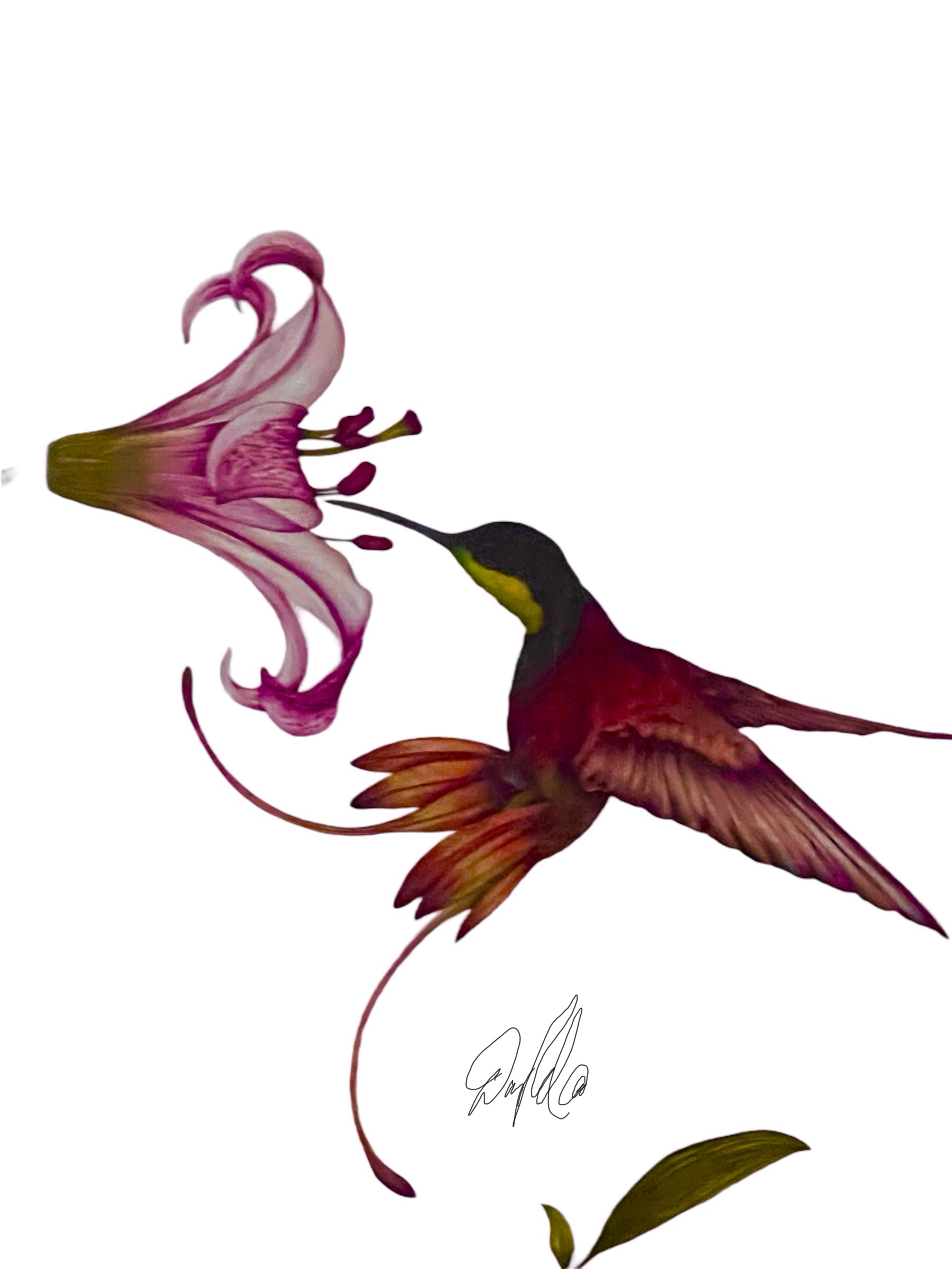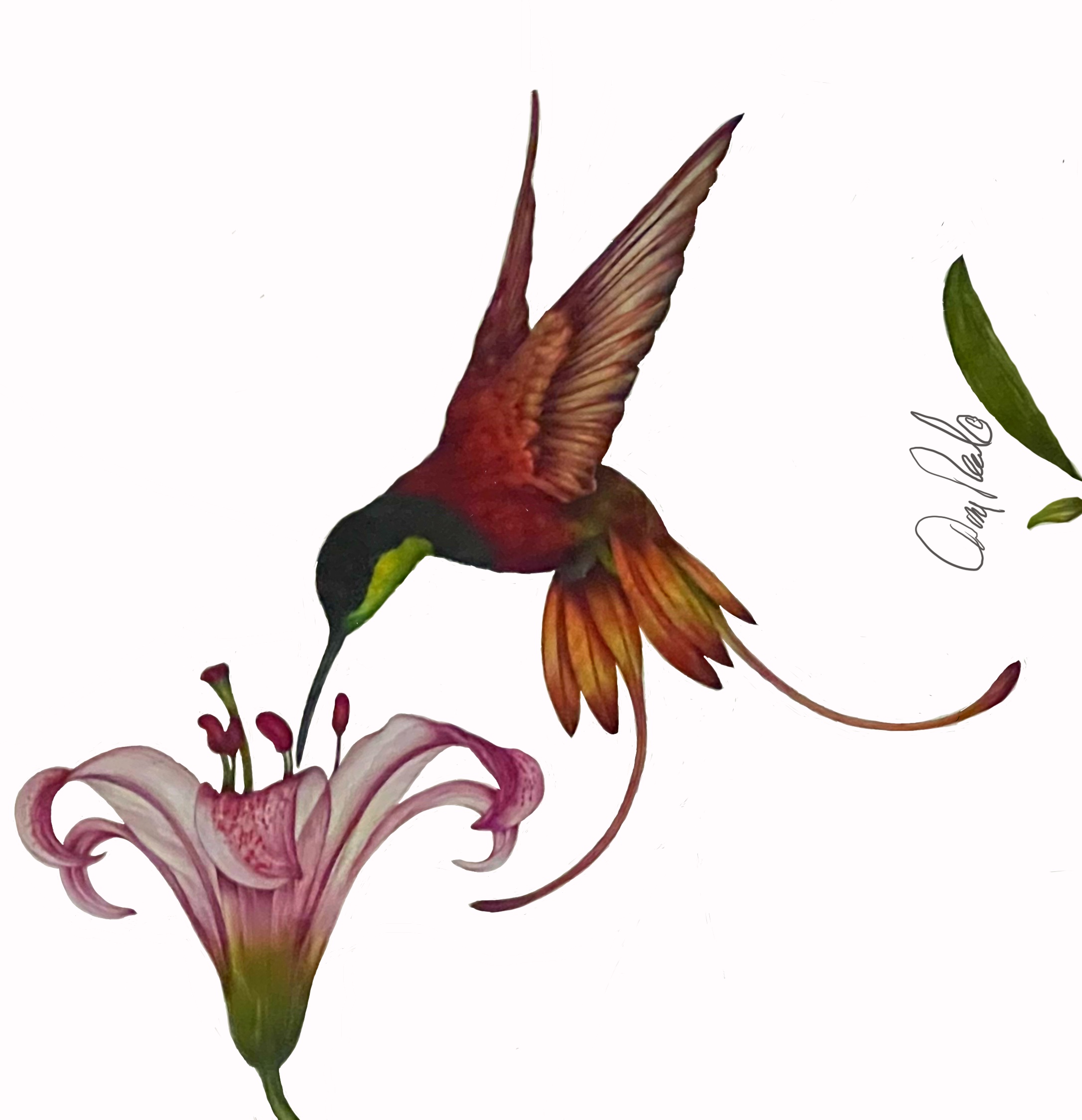 Crimson Topaz Hummingbird on Rubrum Lilly