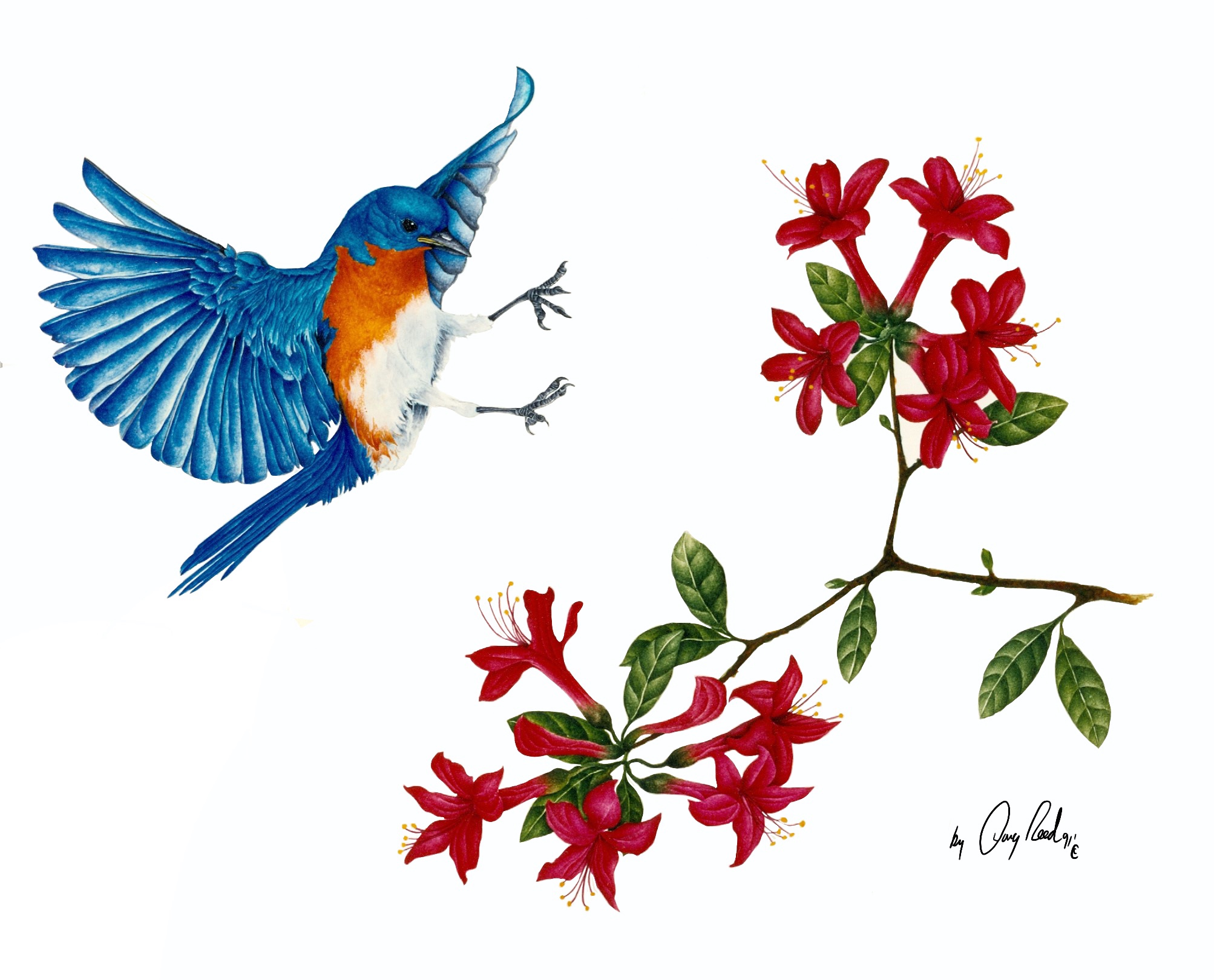 Eastern Bluebird on Formosa Azalea
