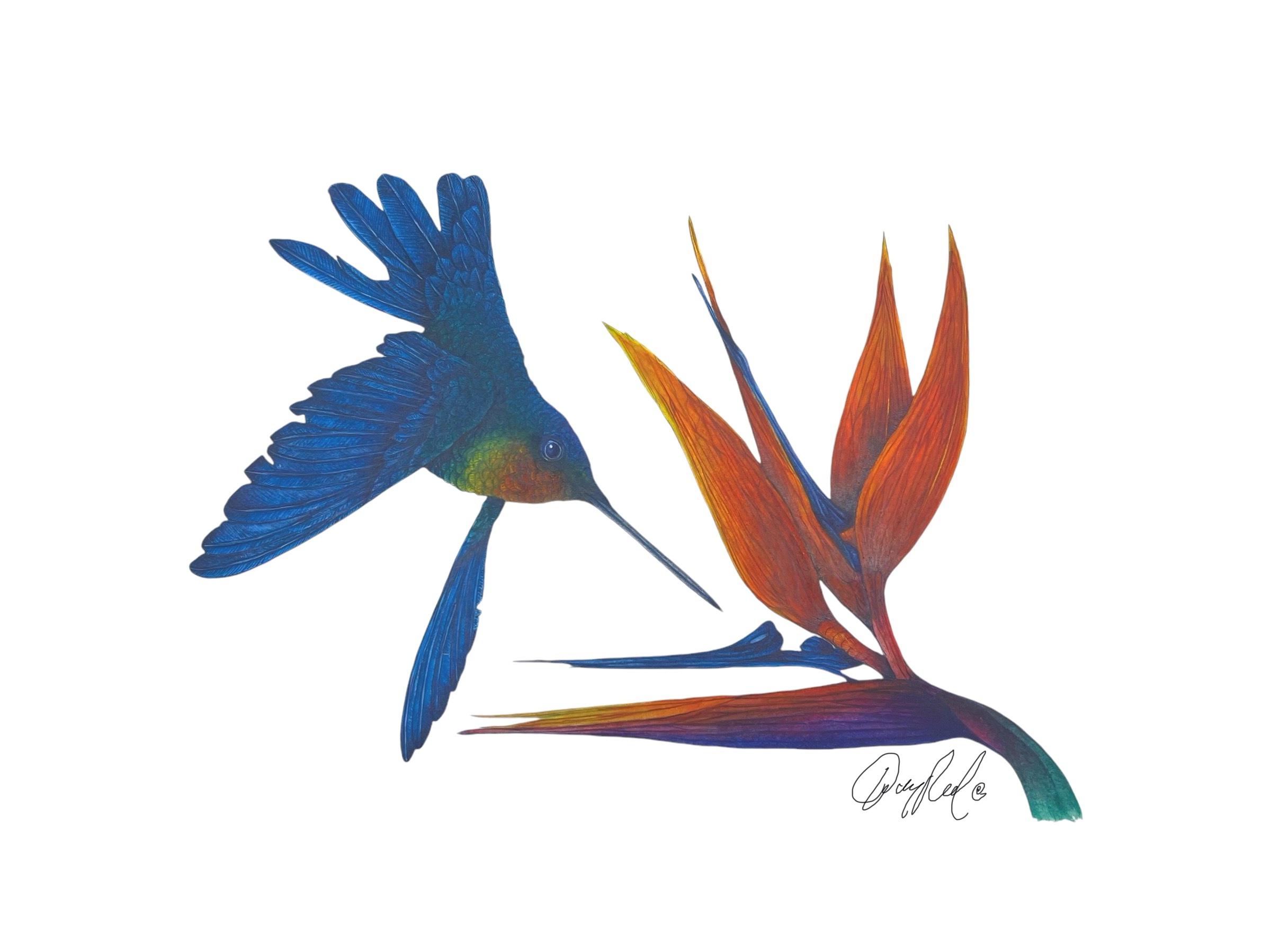 Fire Throated Hummingbird and Bird of Paradise Flower