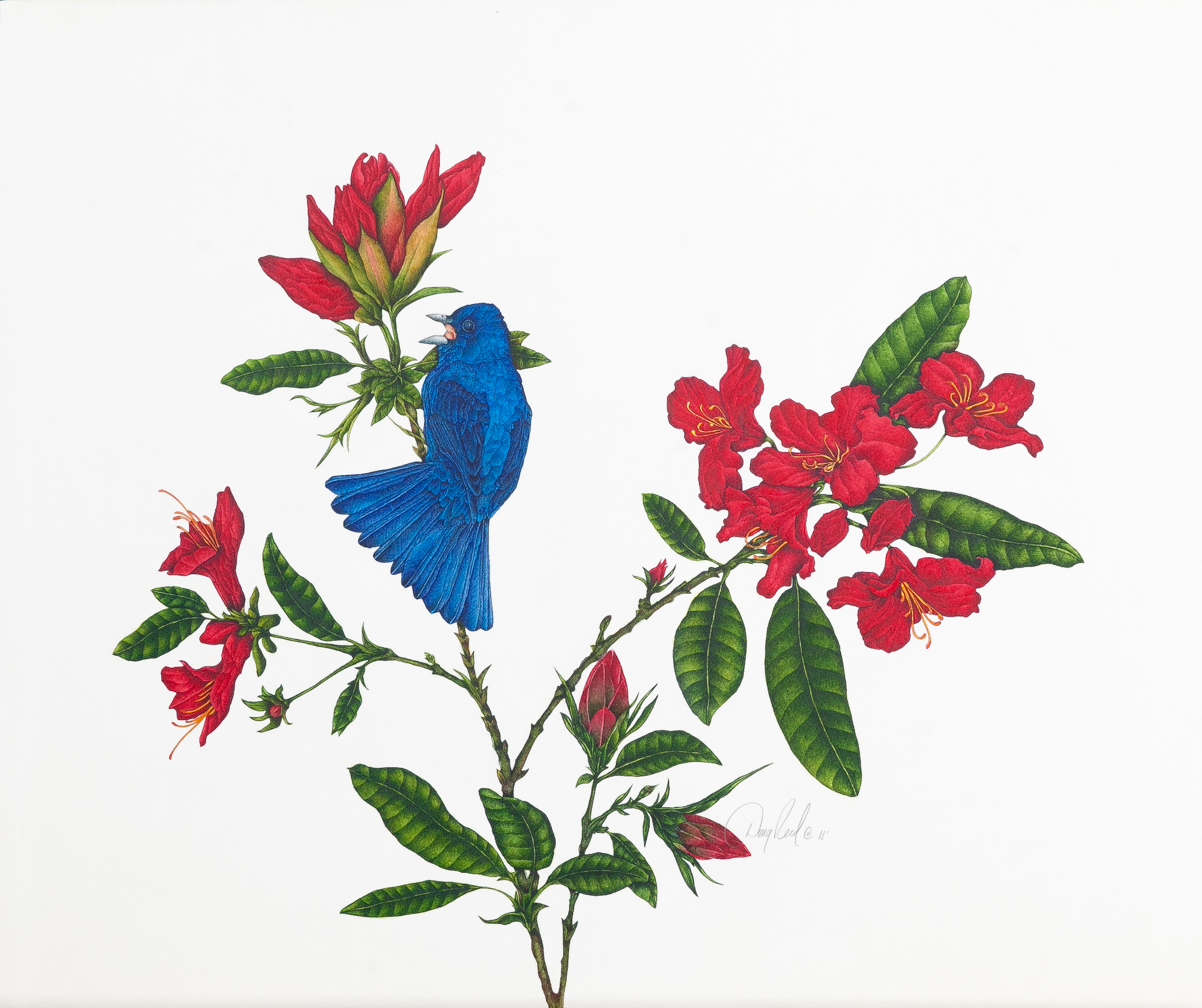Painted Bunting on Pride of Mobile Azalea