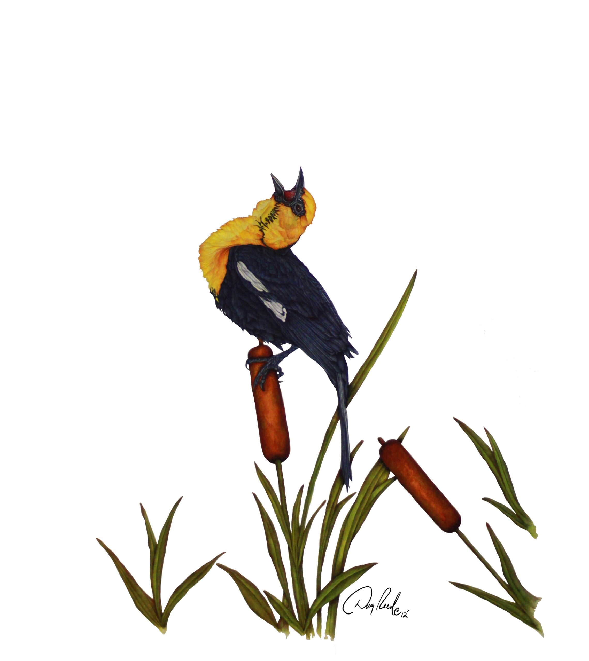 Yellow Headed Blackbird with Cat Tails